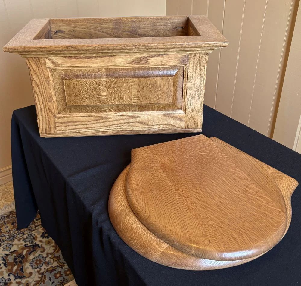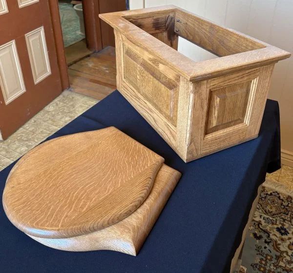 - Both the tank and seat have been stained and finished using the same materials, but different woods caused some differences in color.