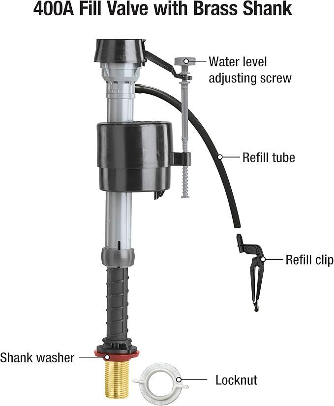 - Fluidmaster's proven fill valve design now more durable with a heavy-duty brass shank